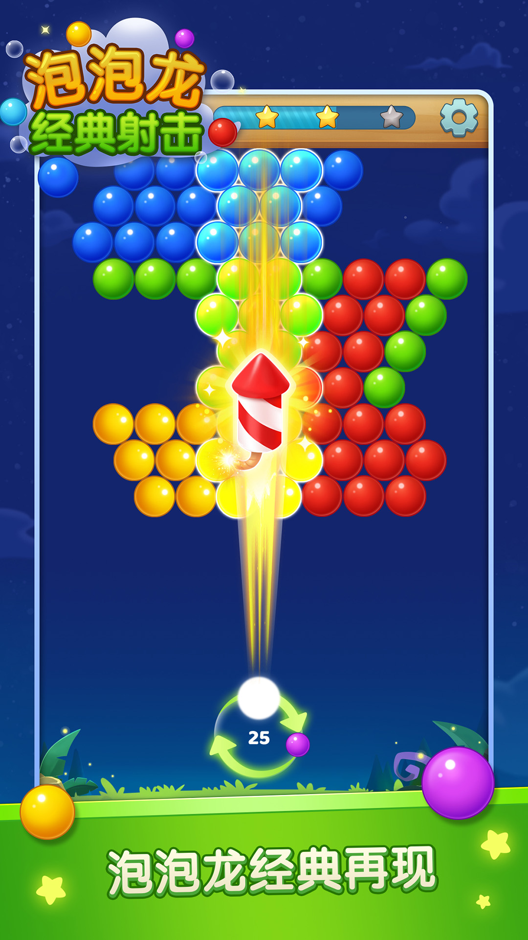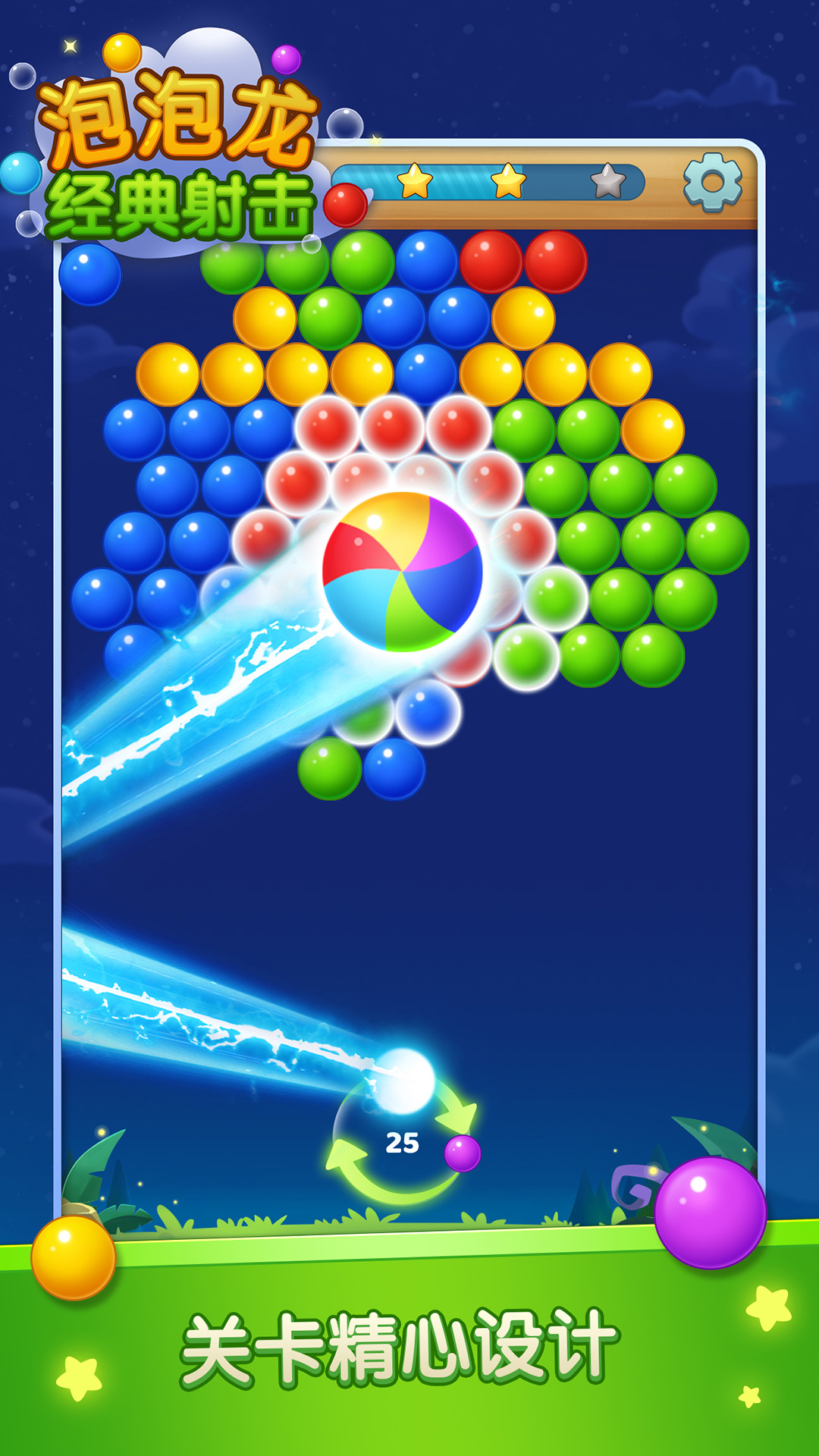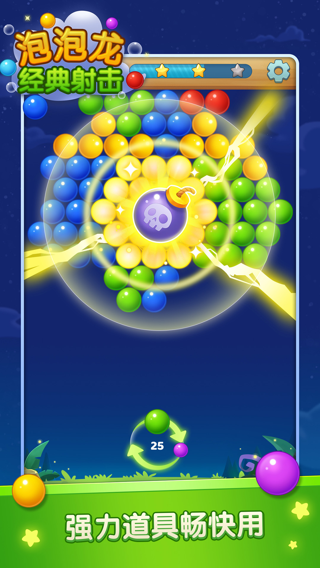 发射泡泡将同颜色泡泡连起来的消除游戏,游戏玩法简单易上手而且老少皆宜。