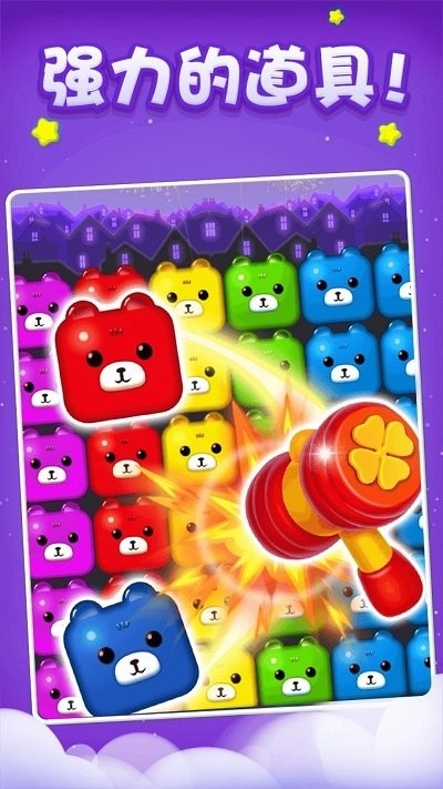 1、简单易懂的滑动操作,连接相同颜色的熊熊进行消除;