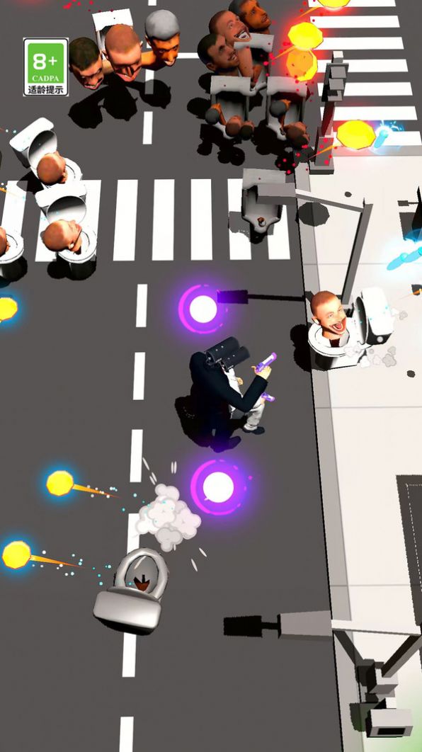 疯狂马桶人作战是一个厕所怪物疯狂城市大乱斗的游戏,玩家将操控主角,通过持续性的无限火力输出,来解决不断出现在城市中的马桶人怪物,会借助上帝视角的操作特点,让玩家不断穿梭在城市之中,更多充满激情的热血战斗,也都可以让玩家轻松解锁,简单的趣味挑战,可以帮助玩家释放更多压力。