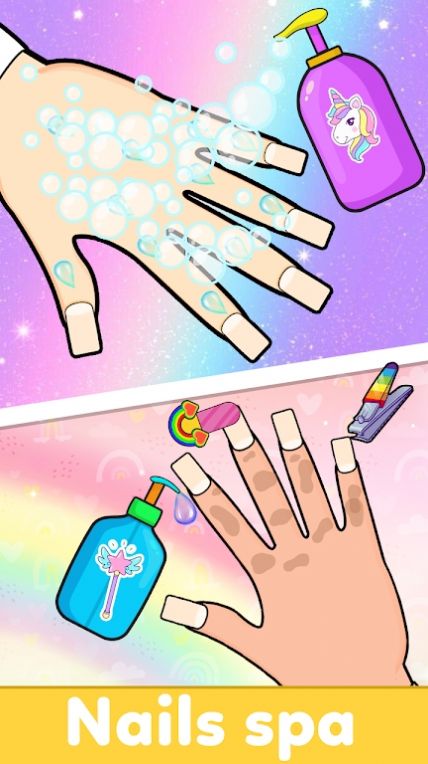 1、采用可爱的卡通风格,画面色彩明亮,为孩子打造一个乐趣的美甲世界。