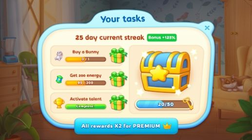 2、融合家居装饰、解谜、成长任务等多种玩法,增加游戏趣味性;