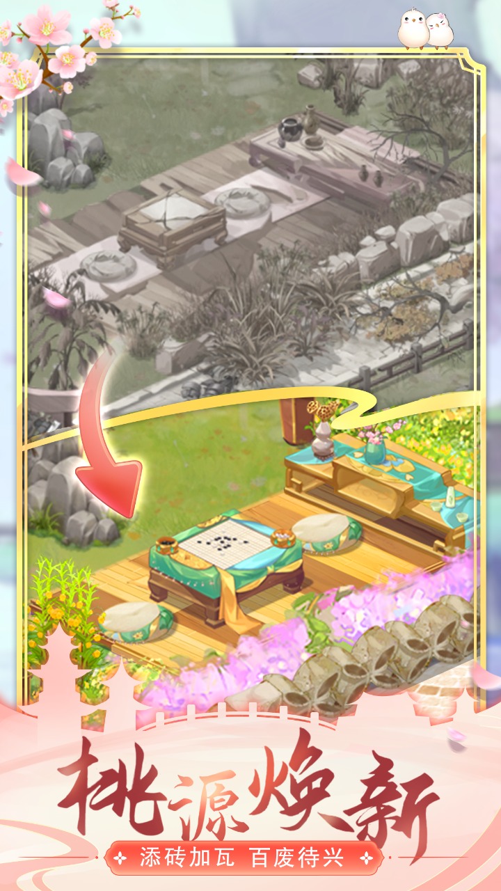 1. 游戏采用唯美的古风画面,为玩家呈现一个如诗如画的桃花源。