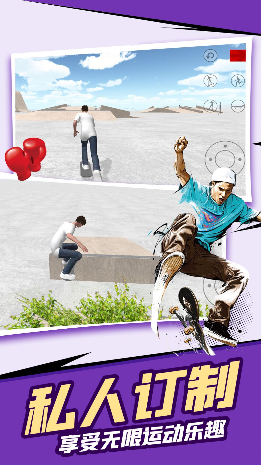 1、掌握基础滑板操作,逐步解锁更高难度技巧,实现空中翻转、地面滑行的完美衔接;