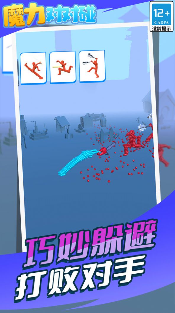 魔力对对碰以其多样化的魔力技能、打斗姿势系统和对撞战斗机制,以及流畅的操作体验,给玩家带来丰富多彩的游戏体验,红色小人和蓝色小人都拥有各自独特的魔力技能,红色小人可能擅长火焰攻击,而蓝色小人可能能够控制冰霜力量。