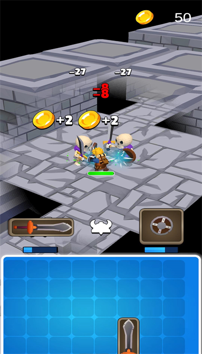 、玩家扮演勇者深入地牢,通过劫掠怪物获得武器,并在战斗中合并提升战斗力;