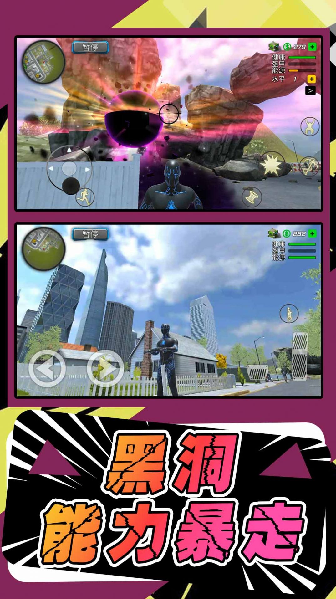 1、游戏过程没有丝毫玩法限制,玩家需要通过对超级英雄的掌控。完成其中的冒险