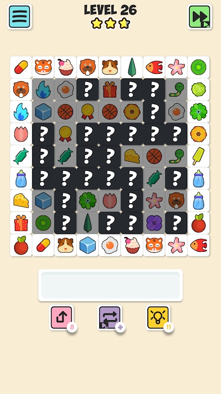 瓷砖配对连接(Tile Pair)每一关都有不同的布局和障碍,这要求玩家在消除瓷砖时必须制定策略和计划,随着游戏进程的推进,关卡会逐渐增加难度,给予玩家持续的挑战感,瓷砖上可能会出现各种图案,如动物、植物、几何形状等,并且游戏通常会根据节日或季节更换主题风格,为玩家提供新鲜感。