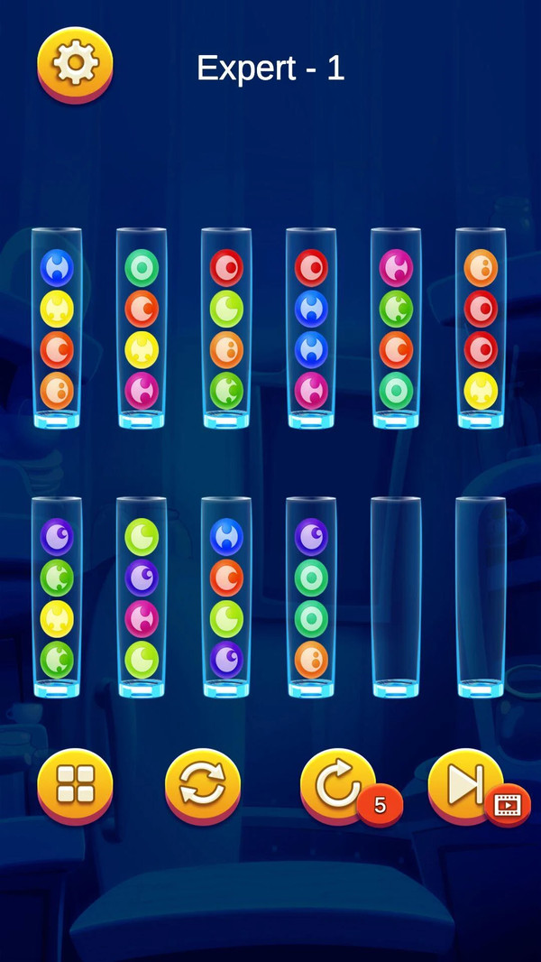 游戏中在界面上有不同颜色小球和几个瓶子,想要分类不得不说需要时间