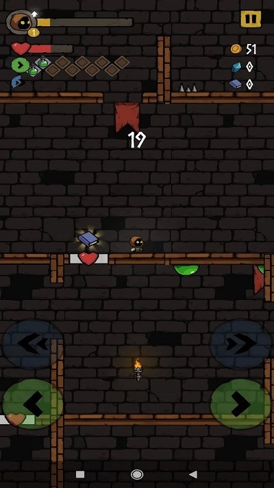 1、操控魔法师主角在地牢中上下穿梭,通过精准跳跃避开障碍物,直达终点;