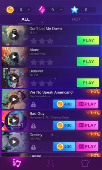 3、丰富多彩的音乐类型,可以随心所欲选择自己喜欢的音乐进行游戏。