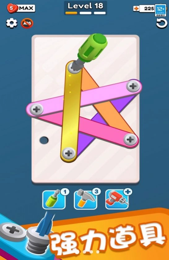 1、创意拧螺丝玩法:模拟真实工具操作,体验别具一格的拧螺丝闯关;