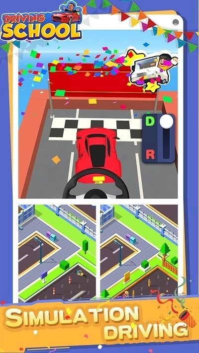 2、驾驶学校的背景,简单3D立体的操作视角,丰富的玩法都能让玩家更快上手,