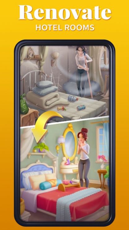 1、通过合并相同元素,来创建自己的酒店连锁店,并且在游戏的过程中不断升级;