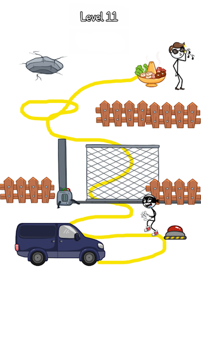 2、创新画线玩法结合物理机制,玩家需绘制路径帮助小偷巧妙逃脱险境;