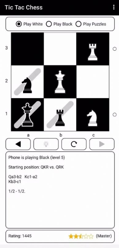 圈圈叉叉与国际象棋(Tic Tac Chess)融合了国际象棋与圈圈叉叉的竞技游戏,提供了一个独特而富有创意的体验,在传统国际象棋规则的基础上增加了决策环节,玩家需要通过类似于圈圈叉叉的小游戏来赢得某些权利或优势,比如换位、复活已被捕获的棋子或是进行额外移动等。