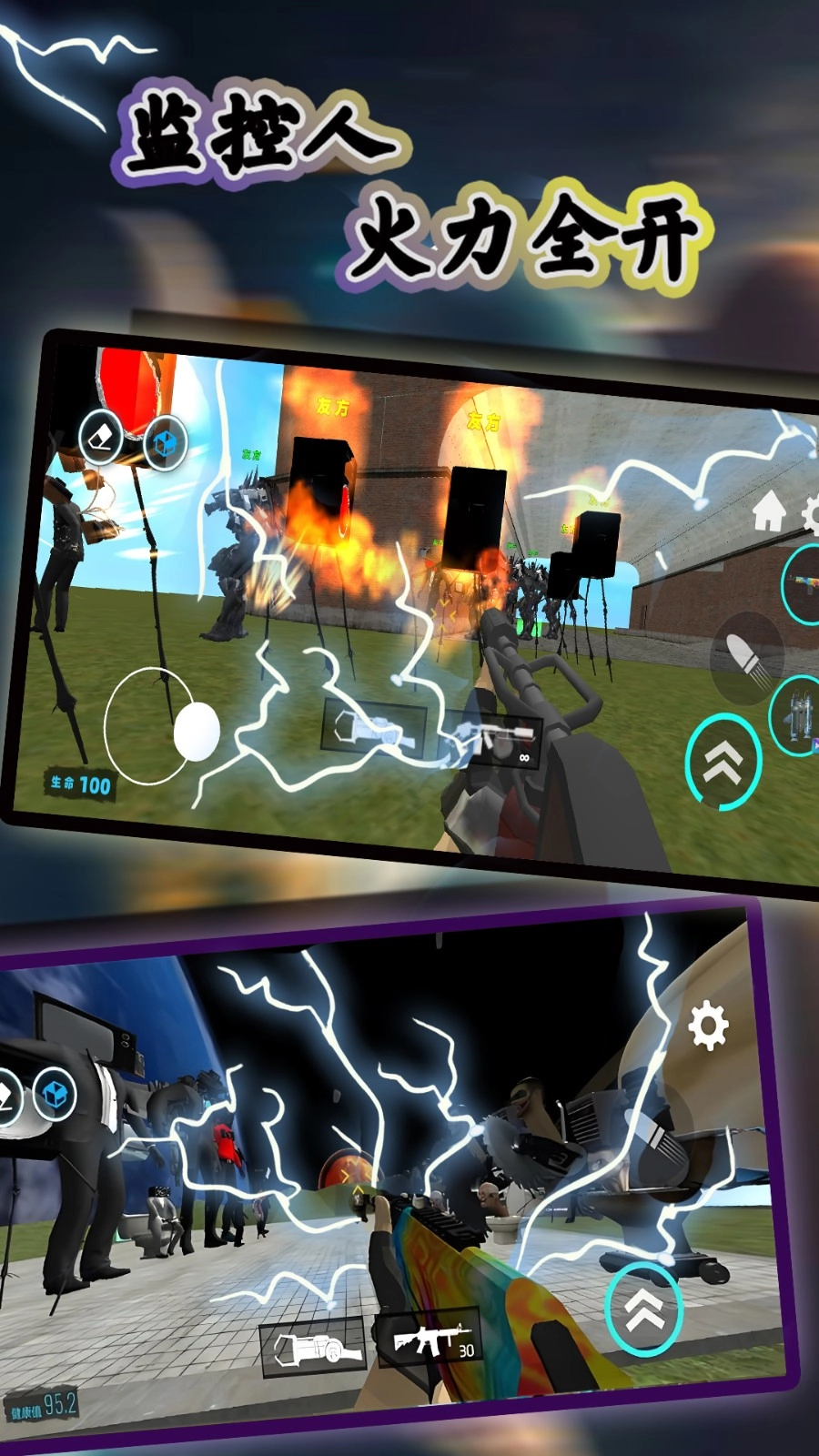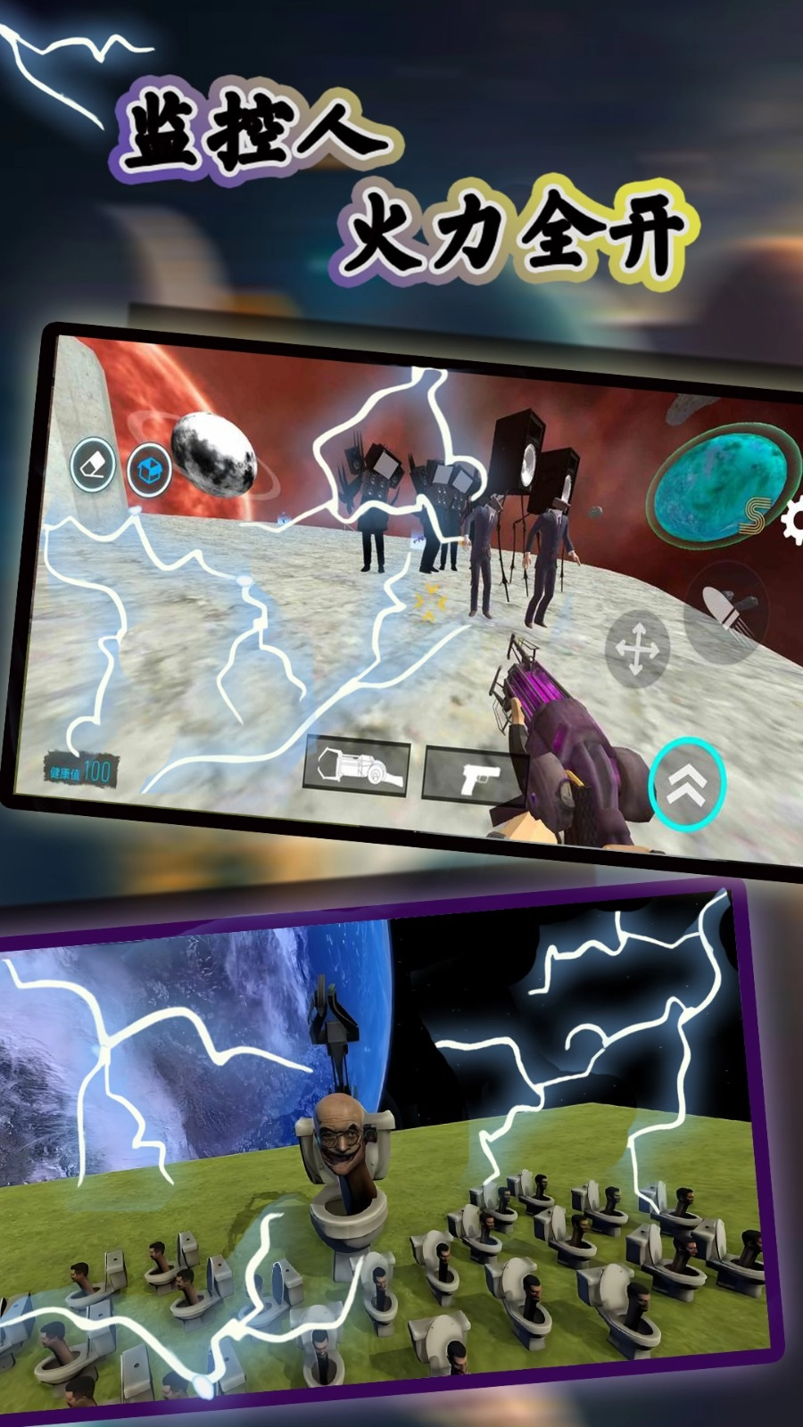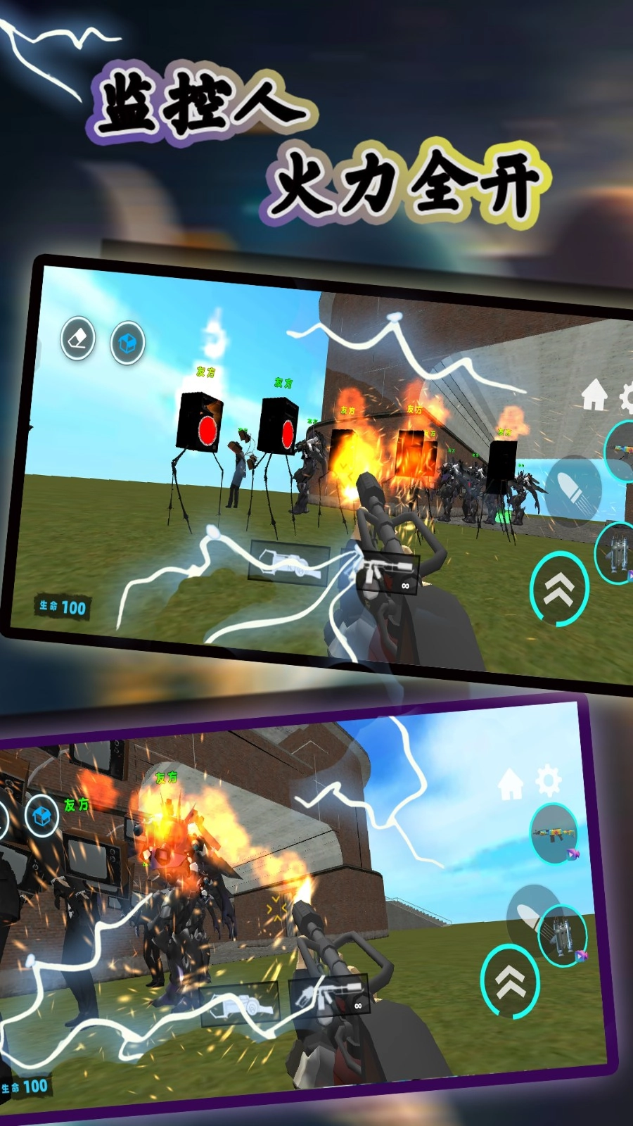 监控人火力全开是一款玩法非常刺激的火柴人城市大乱斗主题的游戏,采用沙盒世界的背景打造3D战场环境,各种凶猛的强大马桶人战士,会通过与玩家的激烈战斗,让玩家体验极为疯狂的热血对决,全新的世界背景,以及经典的玩法设定,会以最顶尖的挑战性,让玩家沉浸在其中的精彩操作和挑战玩法之中。