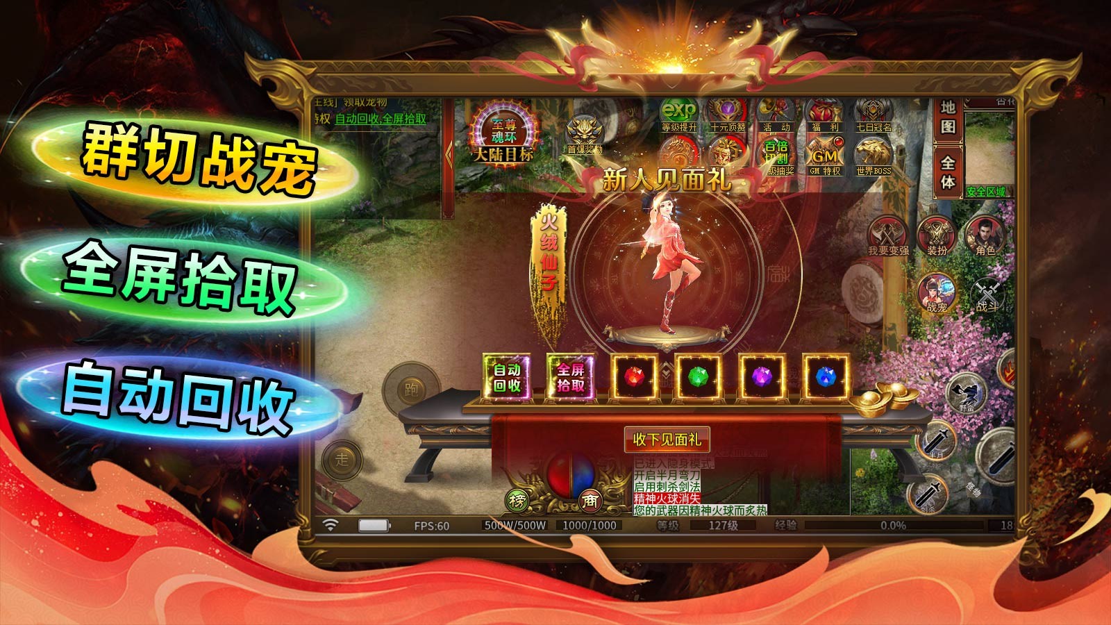 3、热血的无限攻速,自动的装备回收,数十个全新的BOSS等待玩家召唤和解锁。