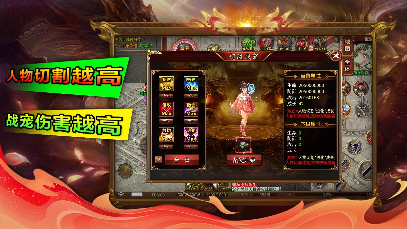 1、需要通过不断的升级来提升自己的实力,成为魔域霸主。