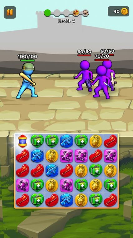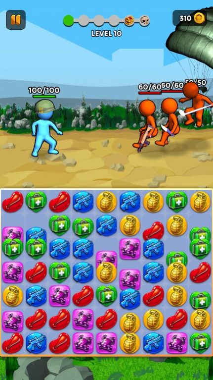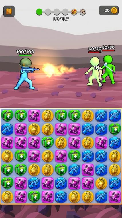 2、通过消除相同元素来获得武器和装备,这些装备能够增强士兵的战斗能力。