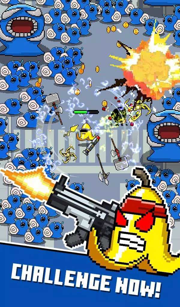 香蕉英雄水果生存者超爽肉鸽割草主题的一款游戏,采用像素风的画面特点,展现其中热血战斗和精彩玩法内容,紧张刺激的游戏节奏,更强烈的挑战性和代入感,持续推动游戏进程,展现其中的鲜明主题和爽快解压的割草玩法。需要玩家通过不同水果英雄的选择,激发强大战斗力,解决更多危险的敌人。