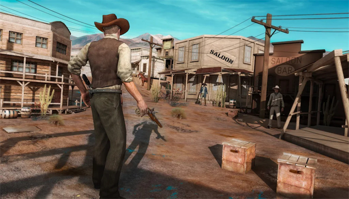 西部牛仔枪射击(West Cowboy Gun Shooting)其精美的3D画面和纯正的西部风情,玩家可以自由地骑马穿越广阔无垠的荒野、小镇和城市。每一个地点都有其独特的环境、NPC和任务,从抓捕通缉犯到保护车队,再到参与赌局或是牛仔竞技比赛,游戏提供了各种类型的任务让玩家体验真实西部生活。