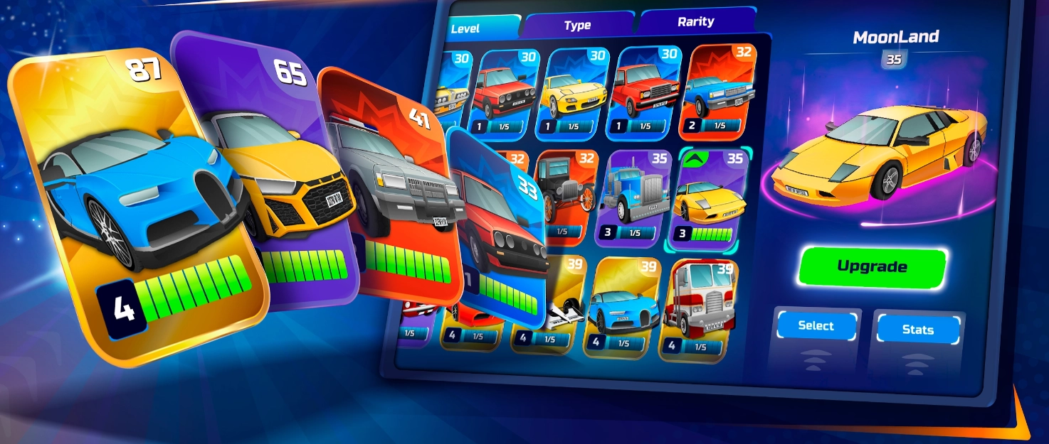 每辆车都有自己的属性,当他的能力更强的时候,发布的赛道会更高级;