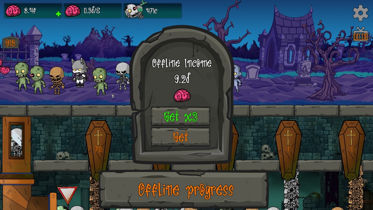 空闲墓地僵尸(Idle Graveyard)这是一款塔防冒险游戏,在游戏中,你必须使用给定的装备来防御僵尸的攻击。在这里,你可以看到许多战斗射手,每一个都有不同的属性。你必须有选择地把一个合理的组合打败僵尸。游戏中还有特殊的药水道具帮助你度过难关,喜欢的小伙伴来试试看吧。
