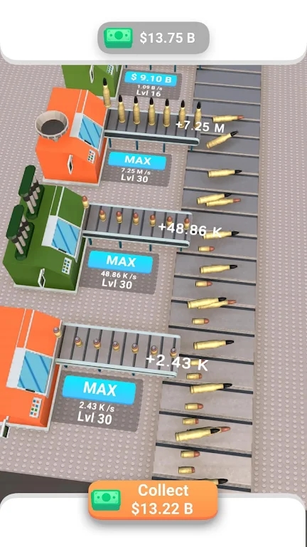 放置弹药生产(IdleAmmoProduction)在这款放置类游戏中,玩家将深入体验弹药生产的各个环节,并通过一系列策略决策来扩展自己的商业帝国,玩家可以解锁和升级不同类型的生产线,包括手枪子弹、步枪弹药、狙击枪子弹以及重型武器用的大口径弹药等。