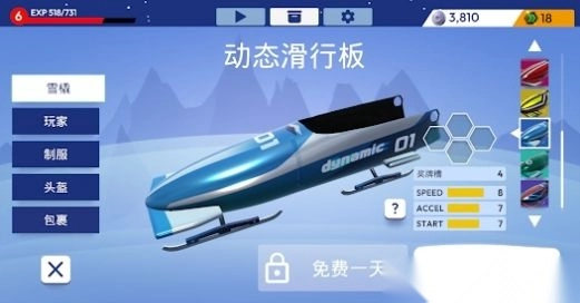 1、可以根据喜好和比赛需求,对雪橇进行外观装饰和性能升级。