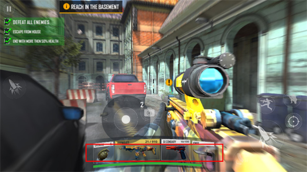 玩家可以自由的切换武器,灵活的进行走位,在枪林弹雨中获得胜利。