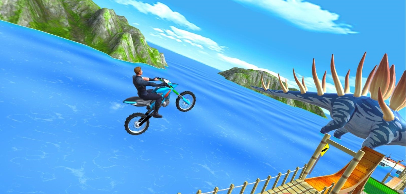 侏罗纪摩托车特技(Bike Stunt)你可以享受赛车的乐趣,游戏中有许多摩托车款式可供选择,玩家可以选择自己感兴趣的汽车进行驾驶。游戏中还有非常丰富的地图可供选择,玩家可以在这里欣赏不同的风景,不断的参与更多的竞速,喜欢的小伙伴来试试看吧。