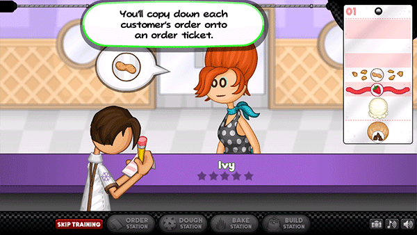 1、点击“take order”为客人点餐,将客人要的食物记录在菜单上。