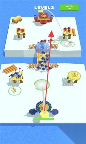 2、可以操作着自己的小人军队不断的在高台上朝对面的敌人不停的射击,然后派遣一些近战单位角色去从地面进攻。