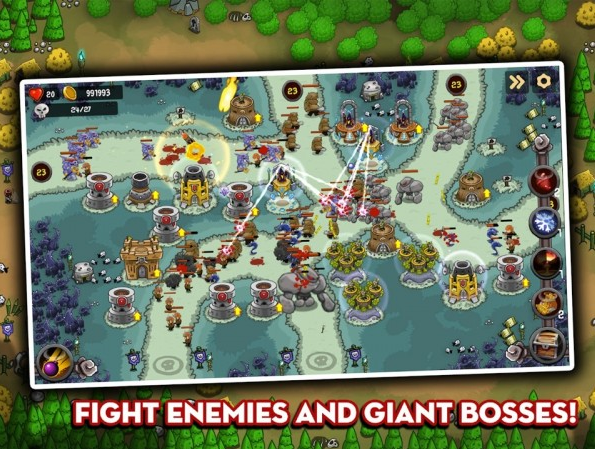 1、使用经典像素画面演示,体验新一代塔防的乐趣,不断地让自己更强。