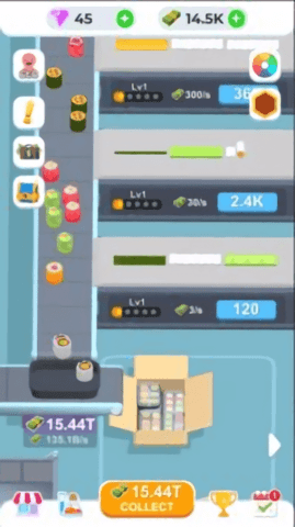 放置寿司工厂朋友将经营一家寿司店,你的任务是不断制作寿司以满足客户的需求。在游戏中,朋友可以合成不同的食物,这样你就可以获得全新的食物,这些食物可以卖更高的价格,让你赚更多的钱,挑战的过程十分的刺激,喜欢的小伙伴来试试看吧。