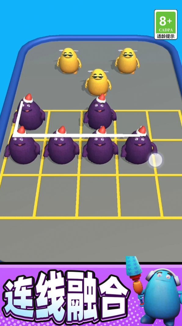 1、玩家需要巧妙拖拽相同级别的糖豆人进行合并,以提升实力并创建更加强大的阵容;
