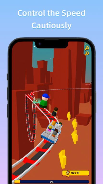 1、过山车传奇冒险中需要集中注意力,掌握过山车运行规律,躲避障碍物;