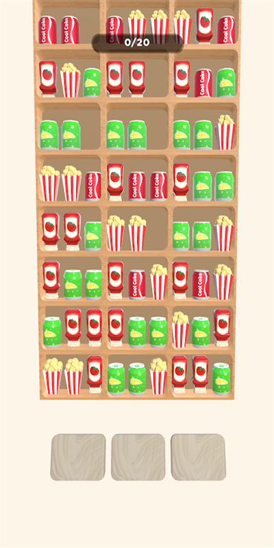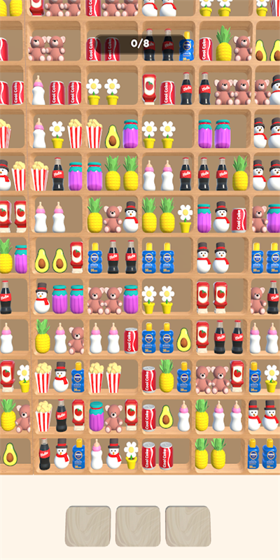 2、放置合并玩法,相同商品合并升级,解锁更多种类,提升收纳效率;