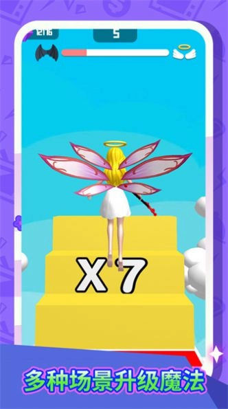 2、天使角色养成,扮演灵动天使,收集翅膀、饰品,定制个性外观,提升跑酷能力;