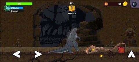 哥斯拉VS金刚联盟是一款动作冒险闯关游戏,2D画风打造,画风真实独特,完美还原了哥斯拉,游戏中有着独特的战斗玩法,武器道具全部免费获取,自由冒险闯关,控制角色闯关冒险,喜欢哥斯拉VS金刚联盟的玩家,快来下载吧!