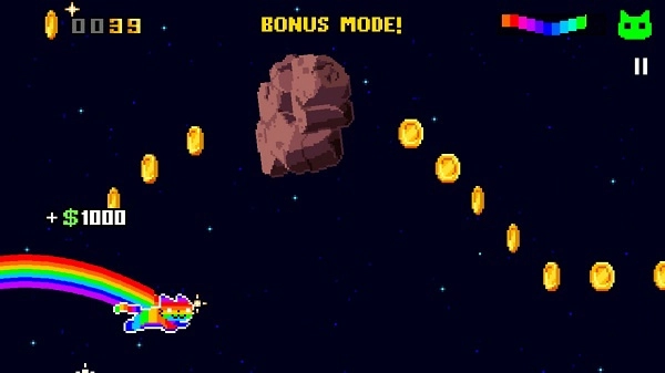 4.比赛按照跑酷距离乘以伤害损失进行评分;像素风格的画面和轻松的BGM。