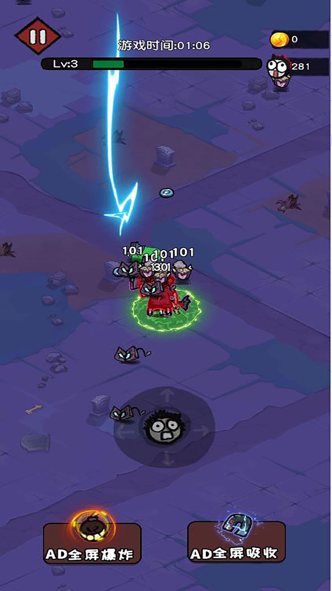 1、地图全部开启,经典割草玩法,游戏操作简单易上手,各种玩法等你解锁。