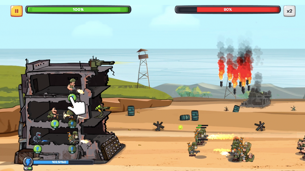 2、升级与养成机制,让你的部队随着战斗不断成长,提升战斗力。
