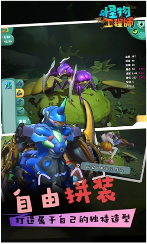 《怪物工程师》的核心玩法在于其丰富的怪物创造系统。你可以从各种部件中选择,组装出独一无二的怪物,每个怪物都拥有独特的外观和战斗能力。在游戏中,你将成为真正的工程师,为你的怪物设计独特的技能和属性,使其在战斗中脱颖而出。
