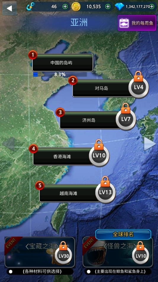 1. 你可以前往世界各地的度假胜地,还有众多丰富的海鱼品种等你收集。