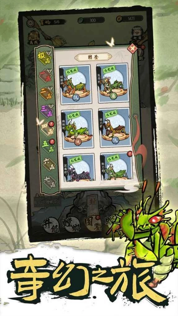 3、迎接重重考验,游戏持续更新升级,形形色色的螳螂等待着你来捕捉。