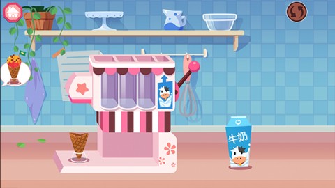 2. 轻点这个标志,即可进入制作界面,着手为顾客打造美味的冰淇淋,记得要加入牛奶哦。