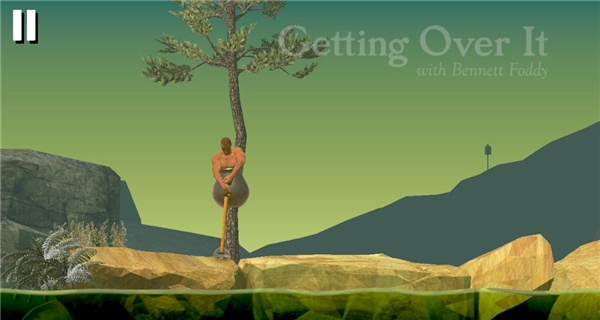 1. 玩家操控一个坐在类似缸状物里的人,借助一把榔头持续向上攀爬,操作十分简易。