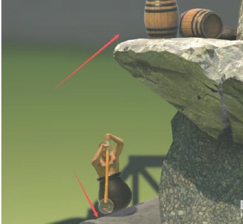 1. 游戏初始时,仅有你这个装在罐子里的人以及一把榔头。你能够通过左右晃动鼠标来旋转榔头,例如让榔头呈朝下状态。