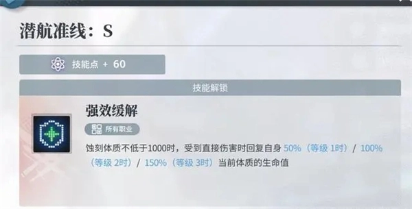 2、幕影重重(体):这是通过剧情2章白送的准线技能,要求蚀刻体质达到1000以上。此技能为本配队的核心,也是莽夫站桩的根本所在。角色挨打时能回复1500血,要是再搭配其他加治疗的技能,单次回血可达到3500血。当体质达到1000后,队伍中的主T、尖峰血量大约能达到5W/3W,游徒血量也能达到2W。除非遭遇瞬间的巨额伤害,否则角色基本不可能死亡。